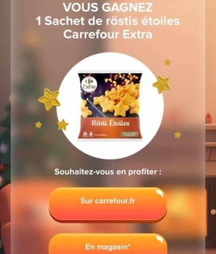 Récupérer gratuitement des produits Carrefour en vous inscrivant ou vous connectant sur l’application Carrefour et en vous connectant sur votre compte ! Vous pouvez ajouter mon code parrainage 144509287.